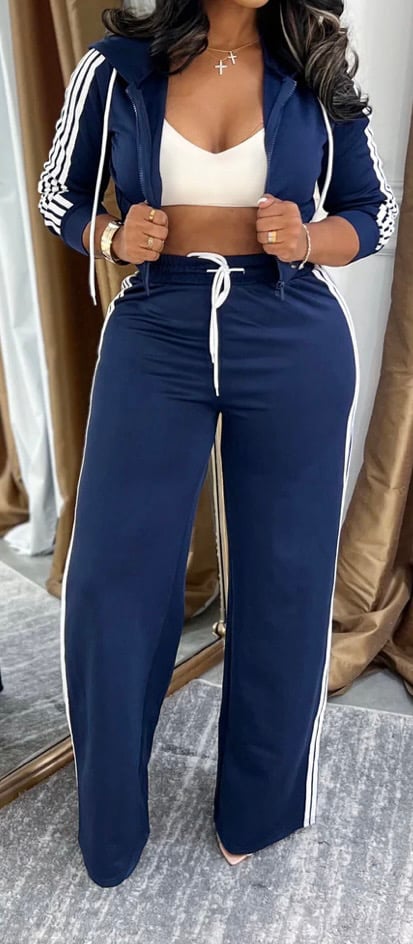 Good stretch front zipper cropped jacket drawstring pants 95% polyester 5% spandex